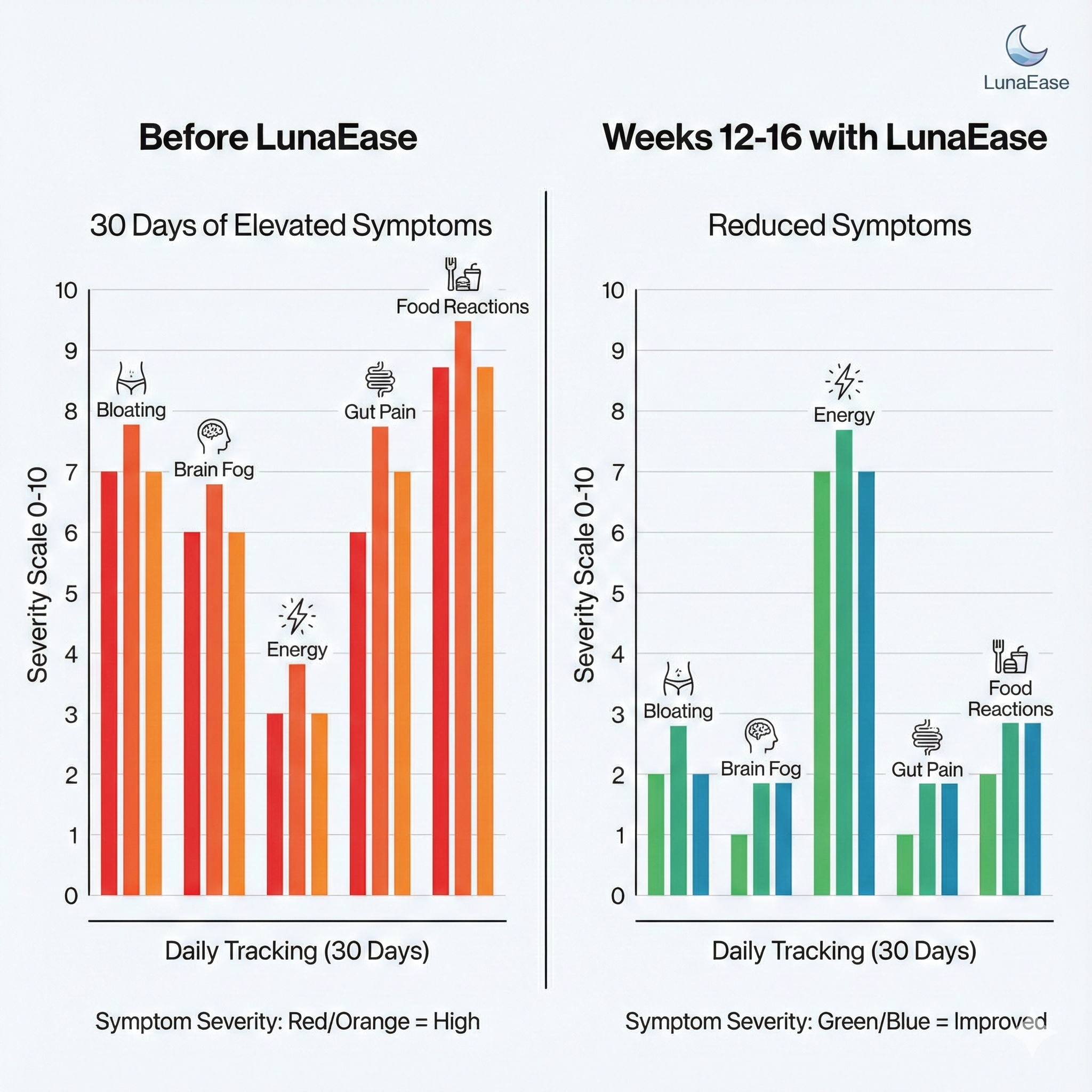 14 months on a perfect gut healing protocol. Glutamine, zinc carnosine, collagen—everything right. Zonulin dropped to 58, then... nothing. I felt broken. Found the ATP research and it finally clicked—my cells couldn't build with what I was giving them. Added LunaEase. Week 8: zonulin 34. Week 12: 26. Normal range for the first time in 3 years. I'm not broken. I just needed the missing piece.